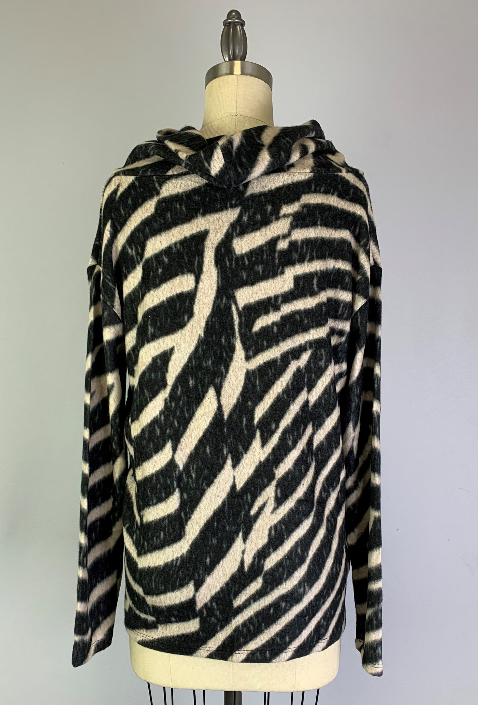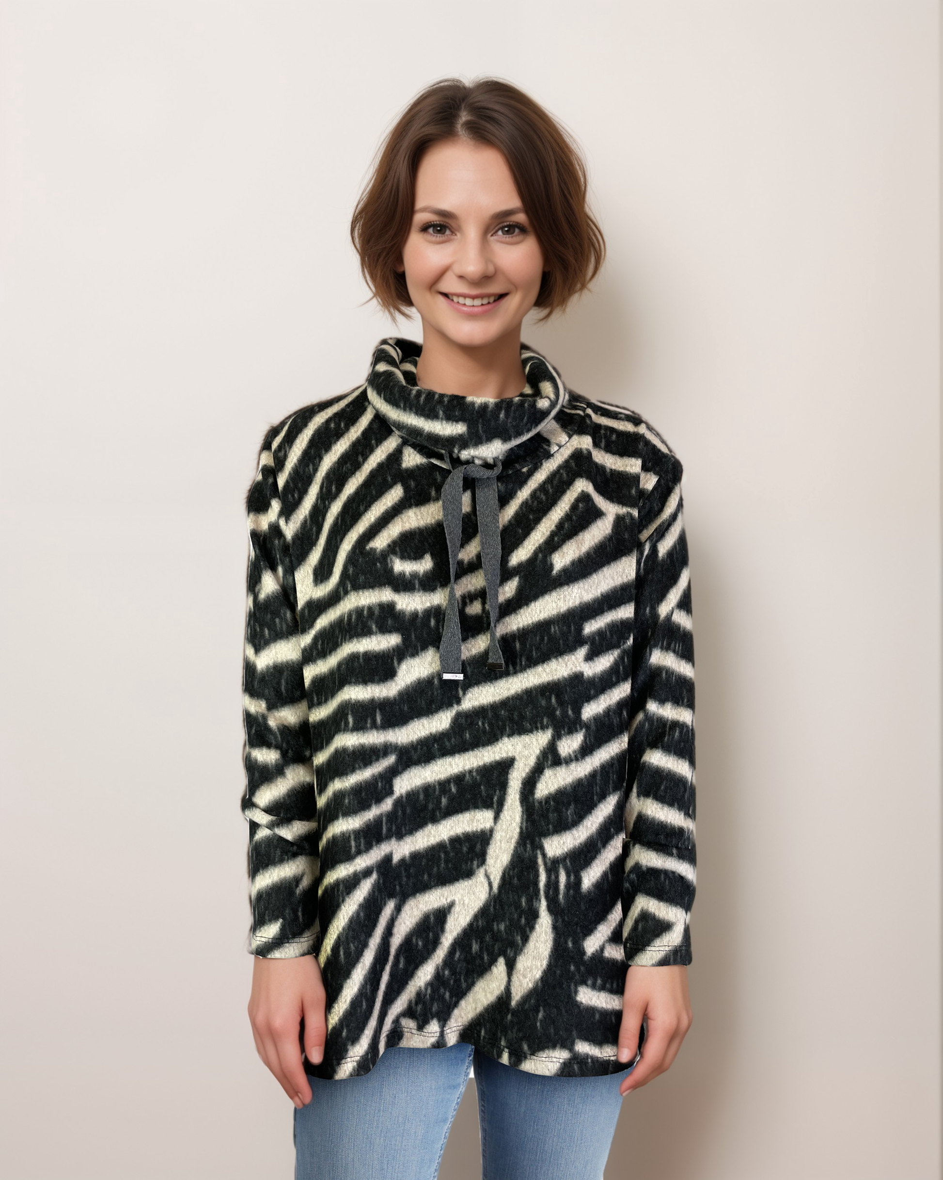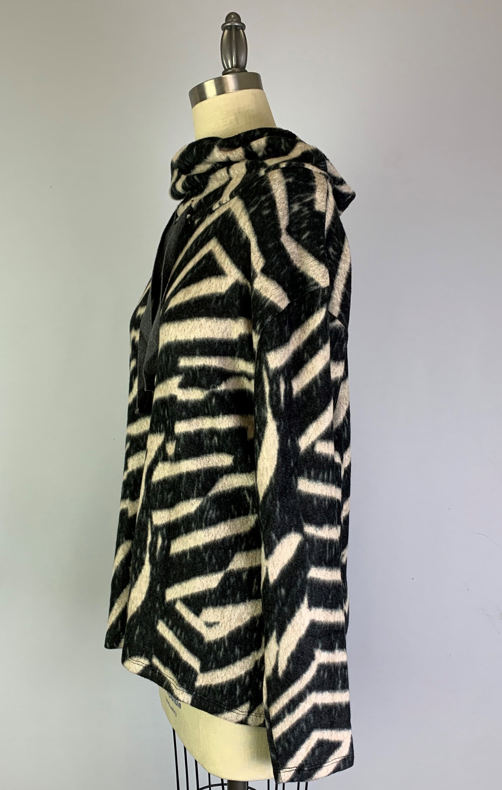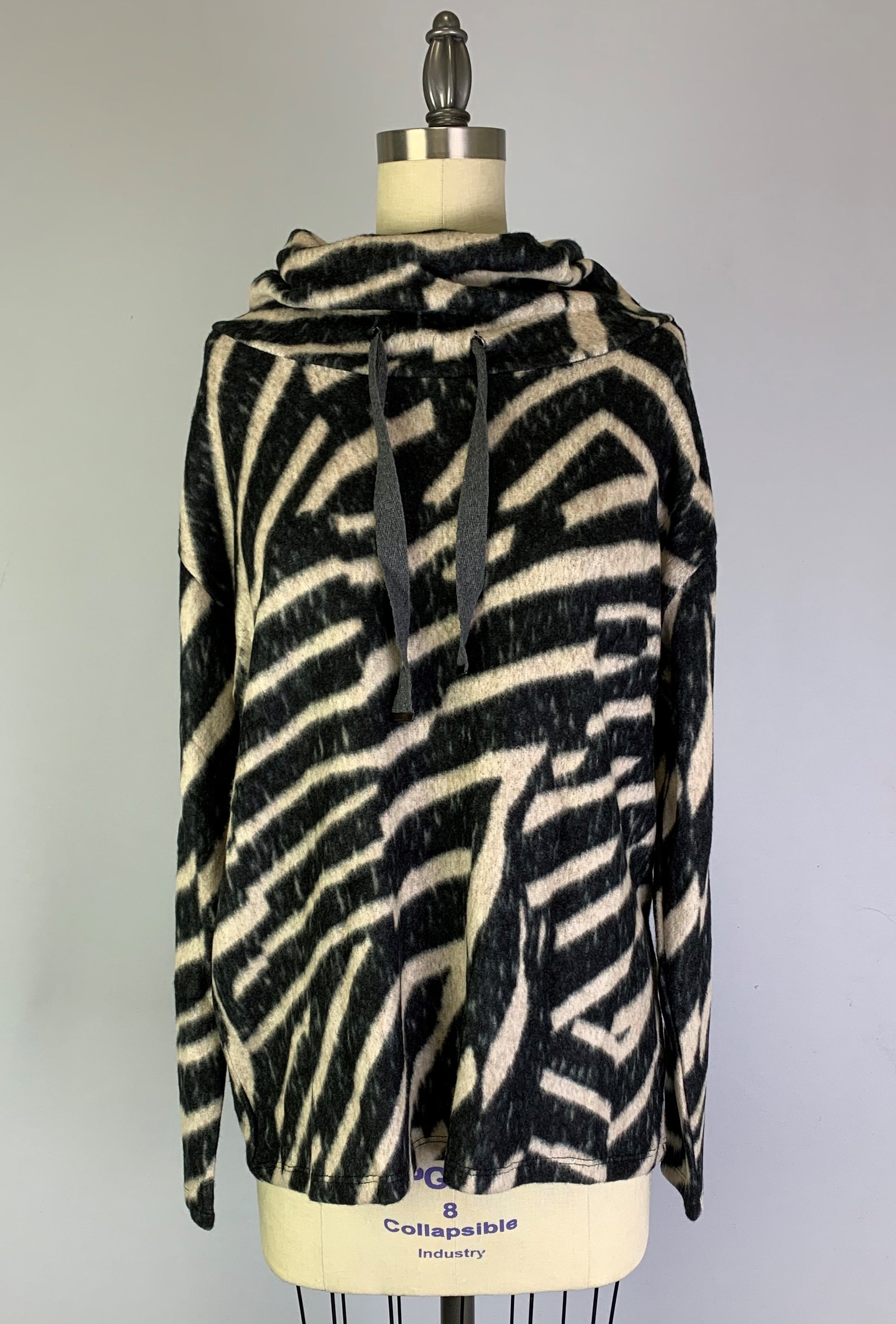 Cowl Neck Drawstring Sweater-like Yummy Top - Black & Sand (D24445)
