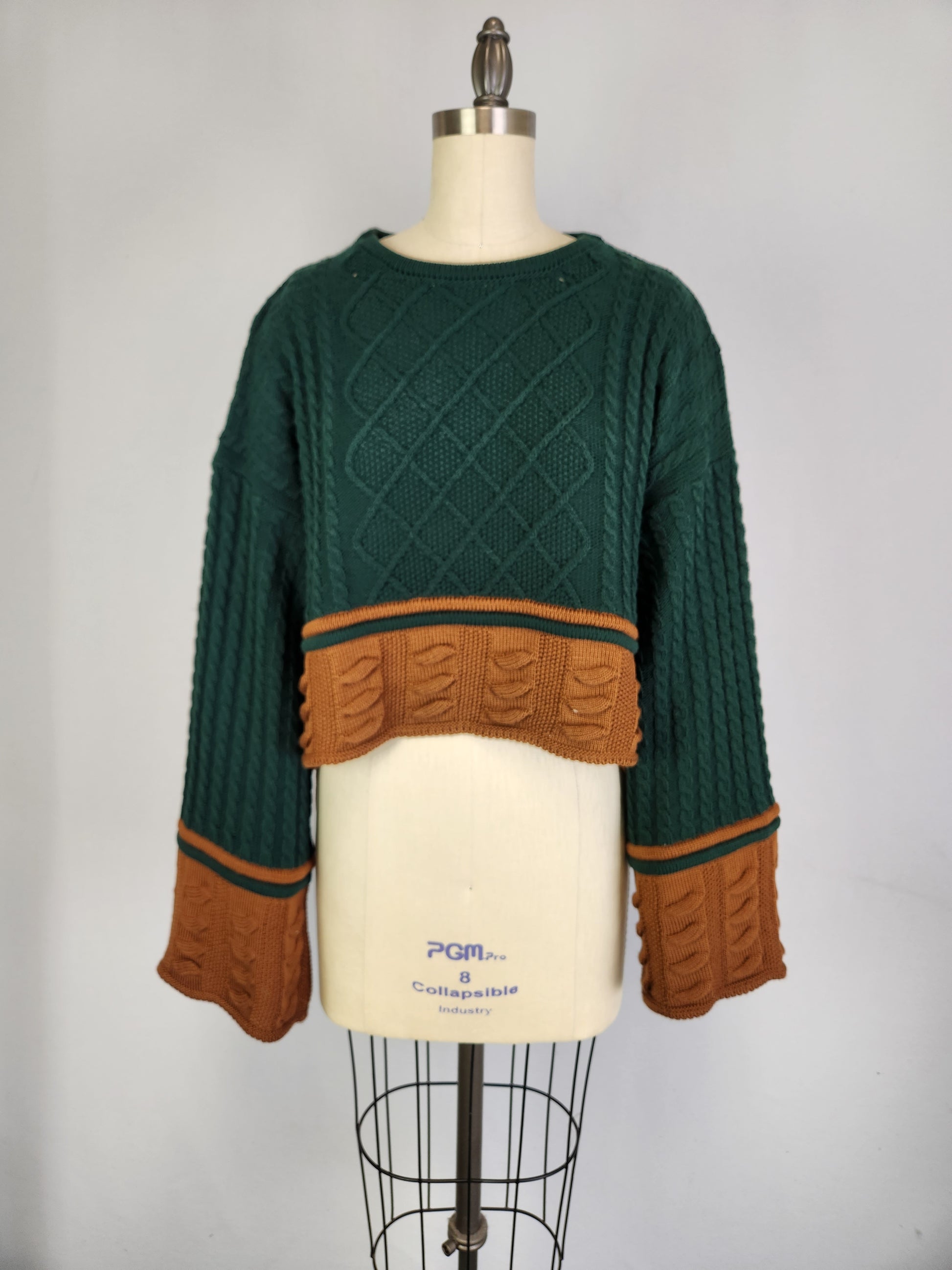 - Hunter Green and Chestnut give the sweater depth of color