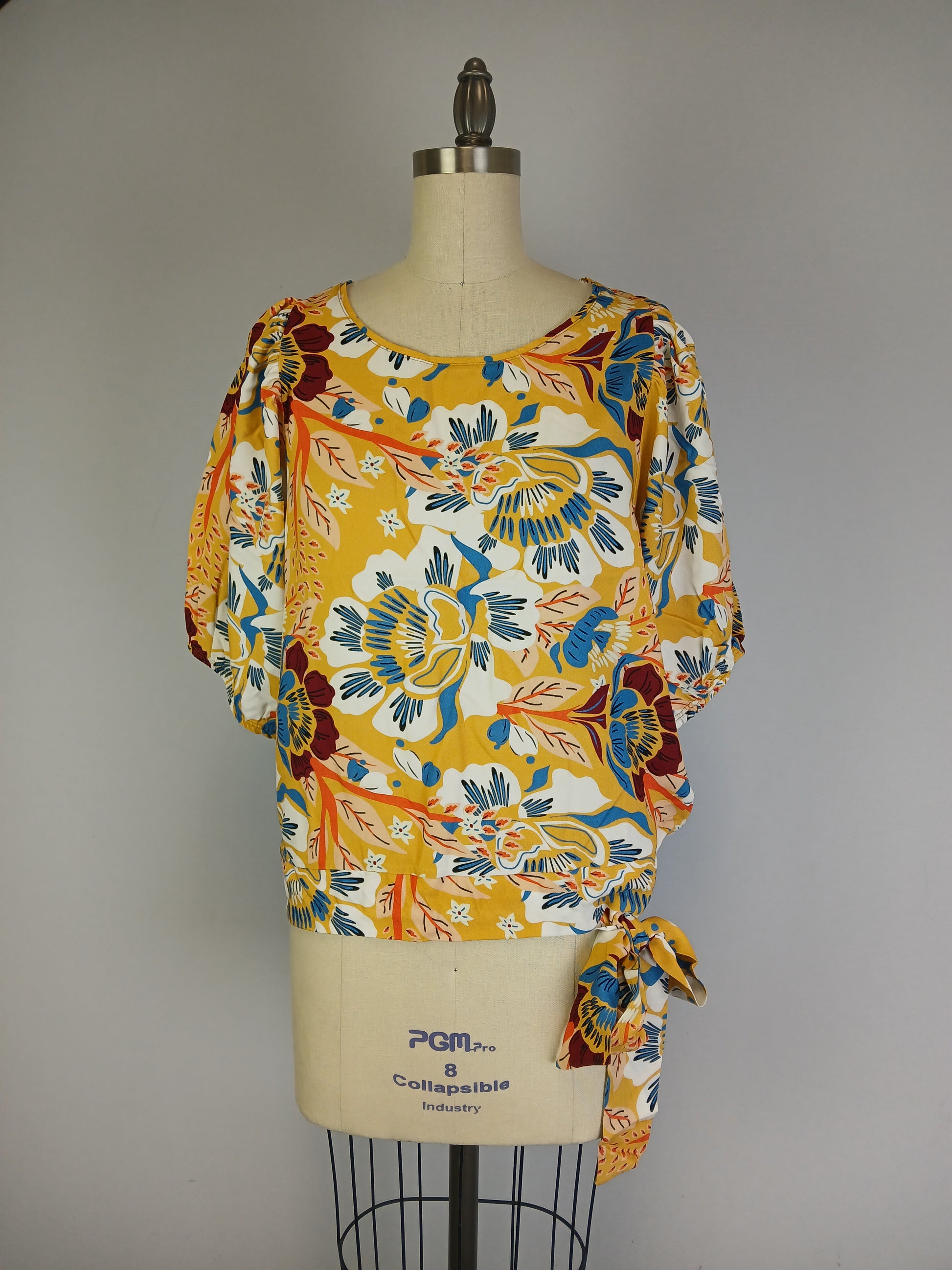 Puff Sleeve Blouse w Banded Bottom -- Flower Print (D26872R)