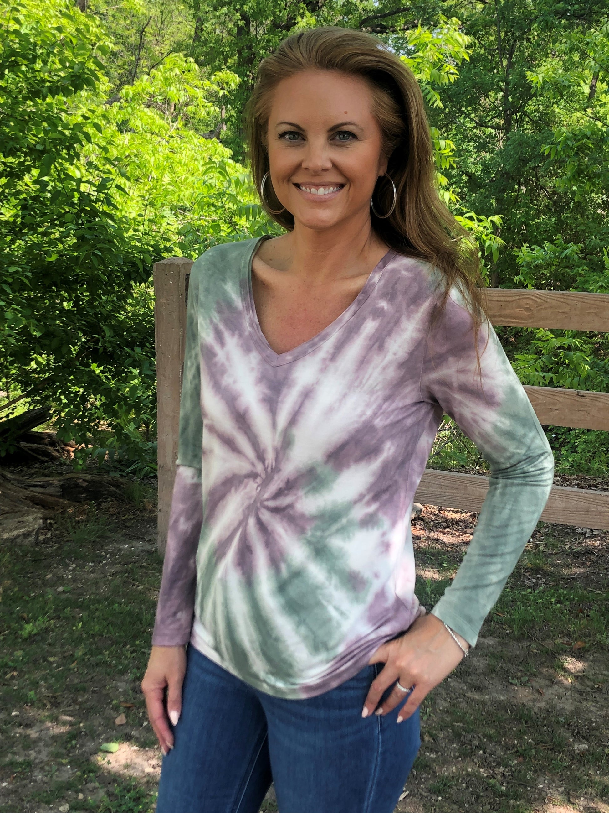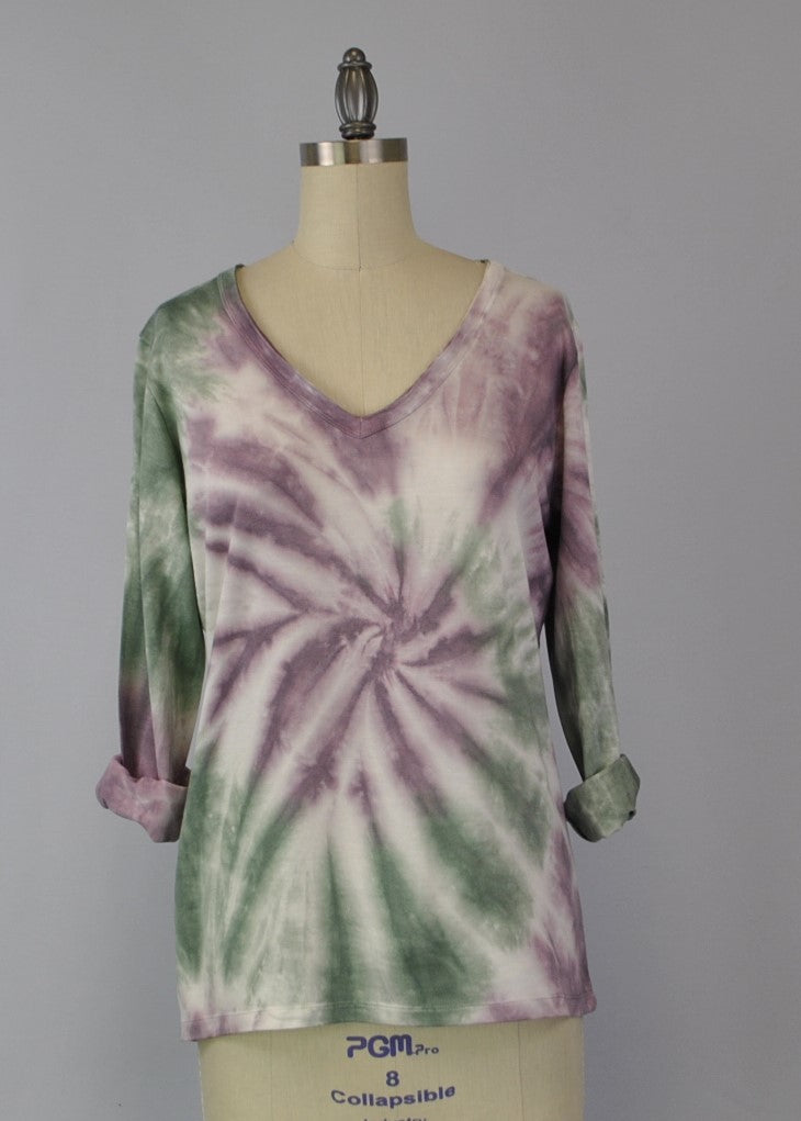Roll Sleeve Swirl Tie Dye Top - Cendre Rosin (D190701)