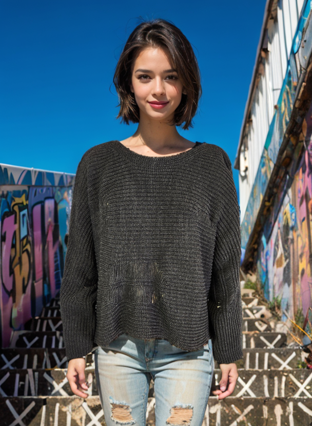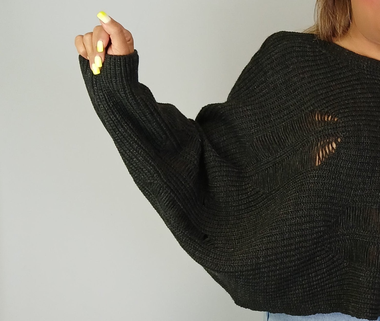 This is a great piece, one size fits all, drop stitch Bat sleeve Sweater