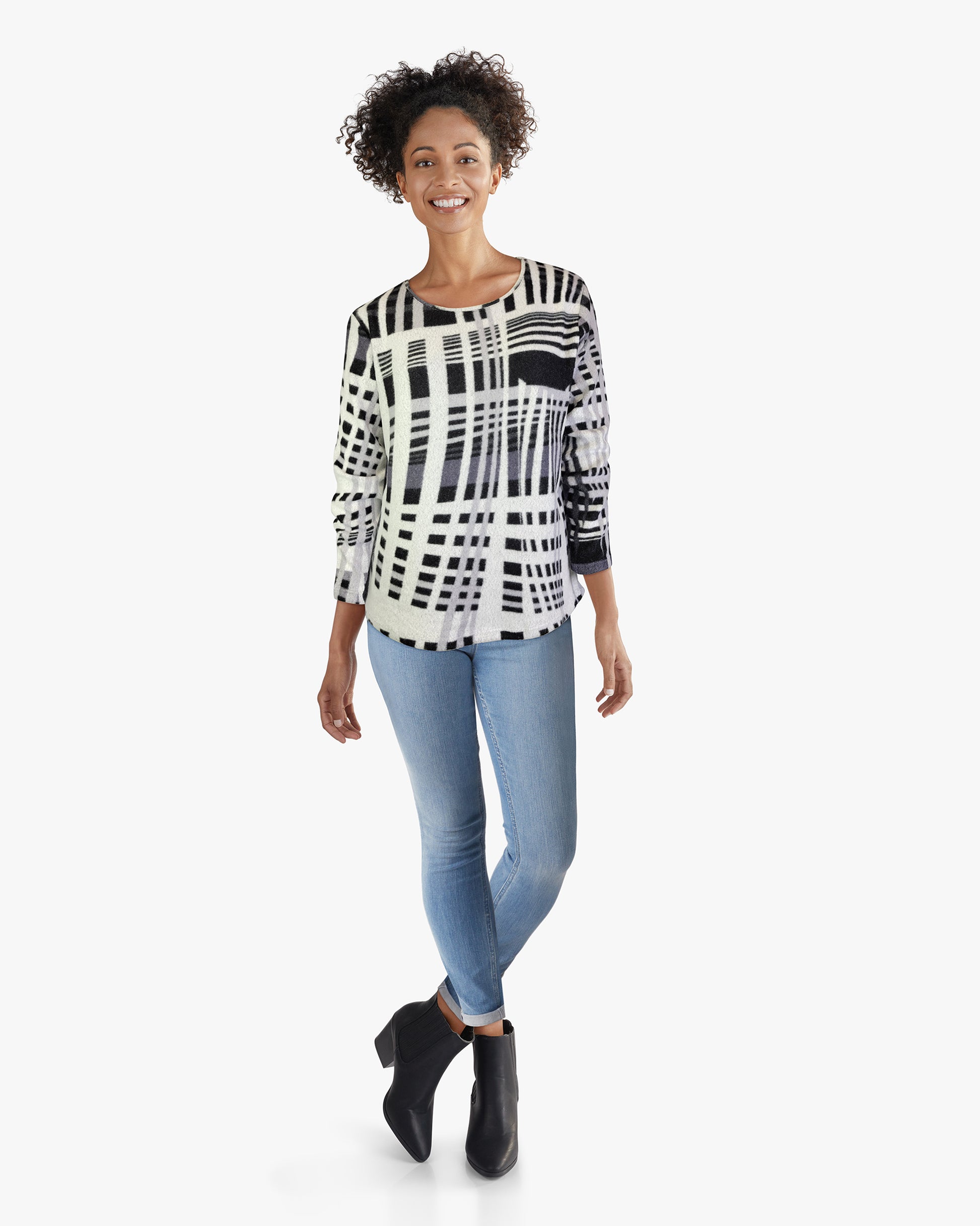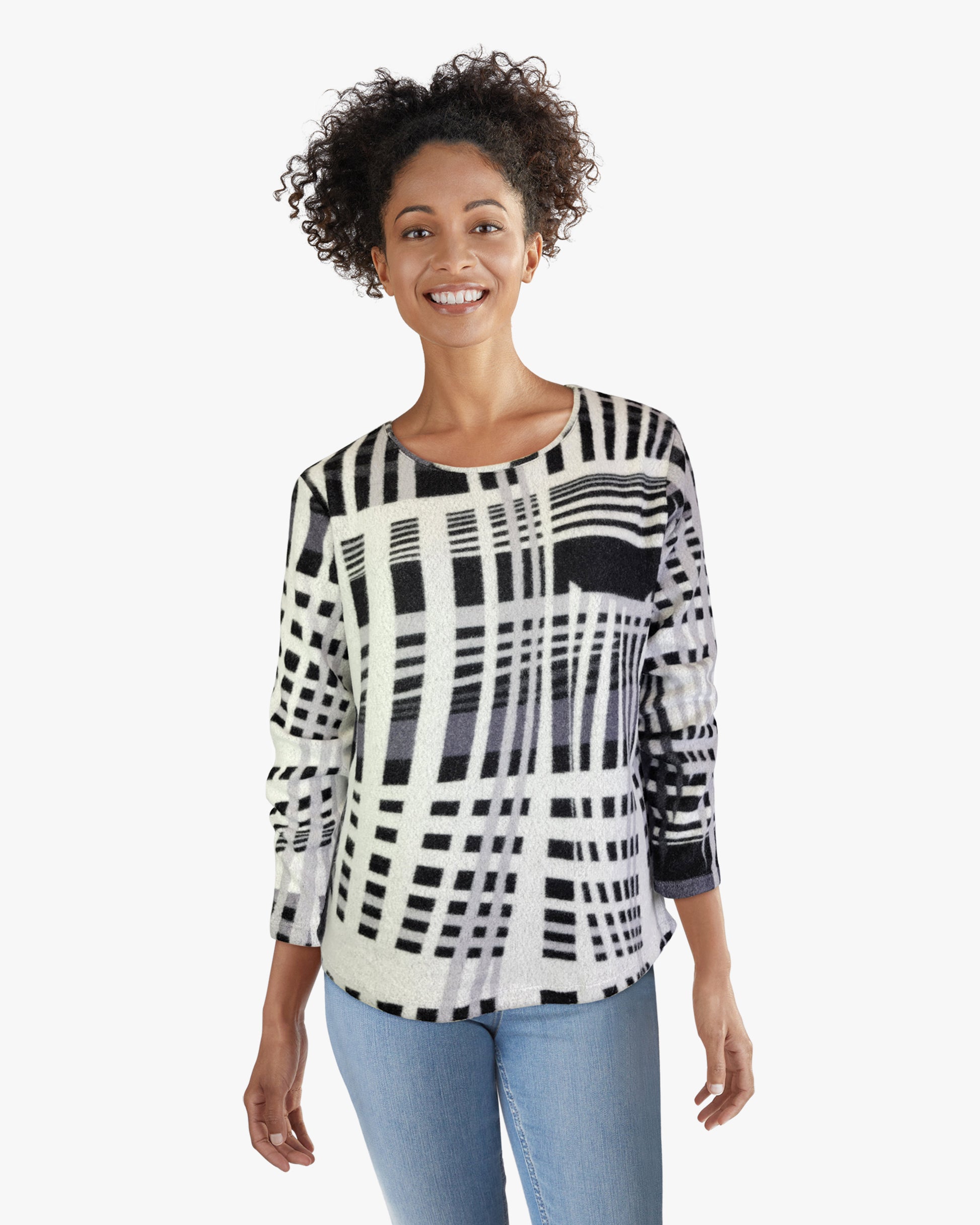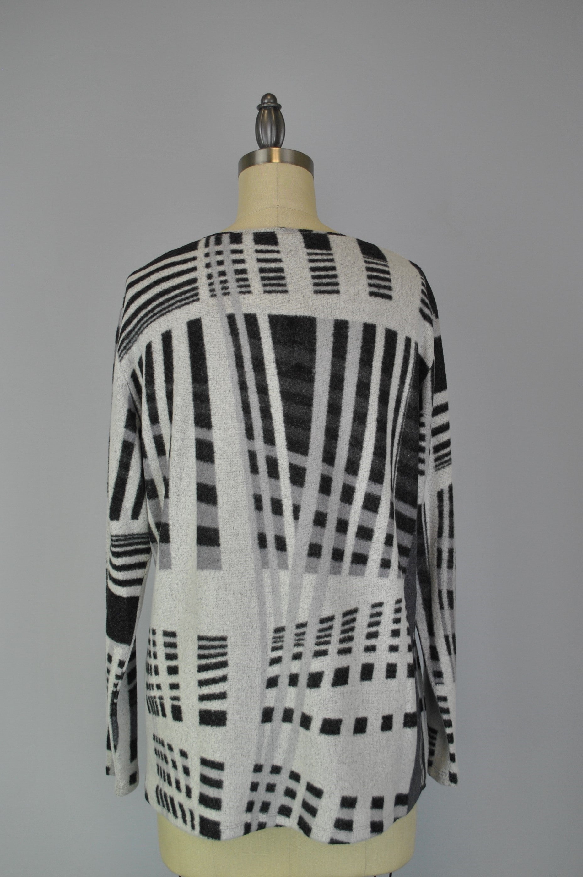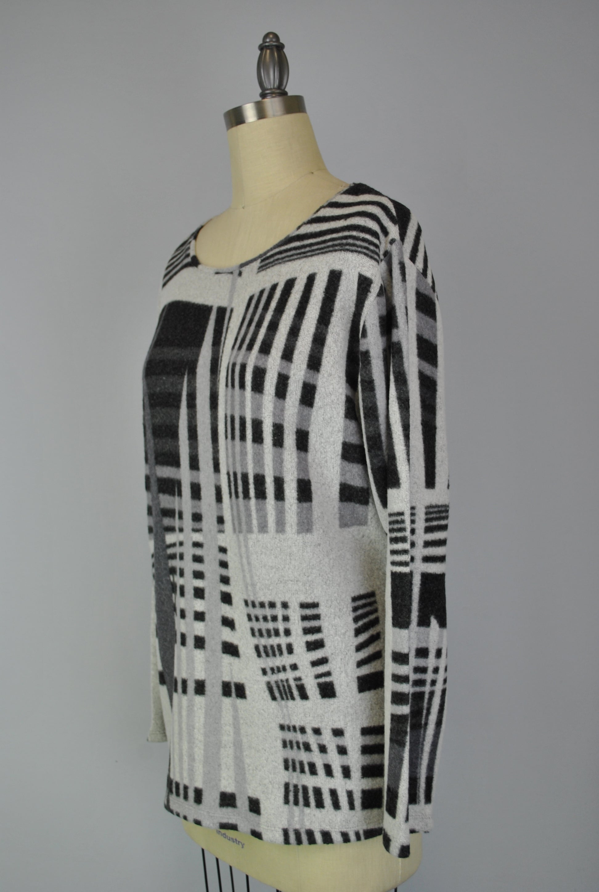 Scoop Neck Sweater-like Top - Black and White (D190638)