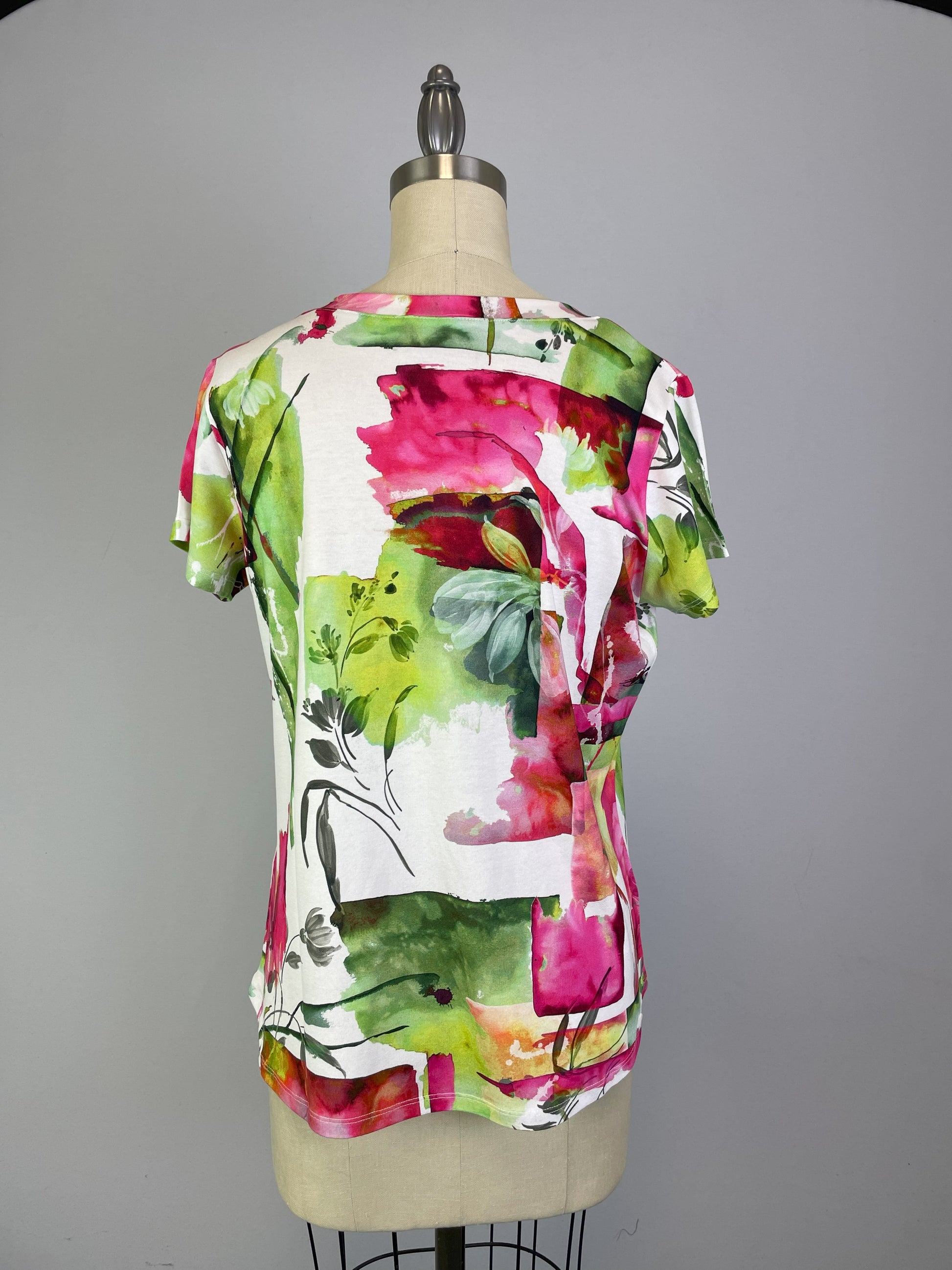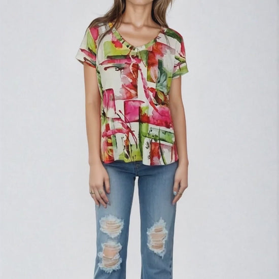 Printed Knit Top -- Pink Floral Design S/S (D28808)